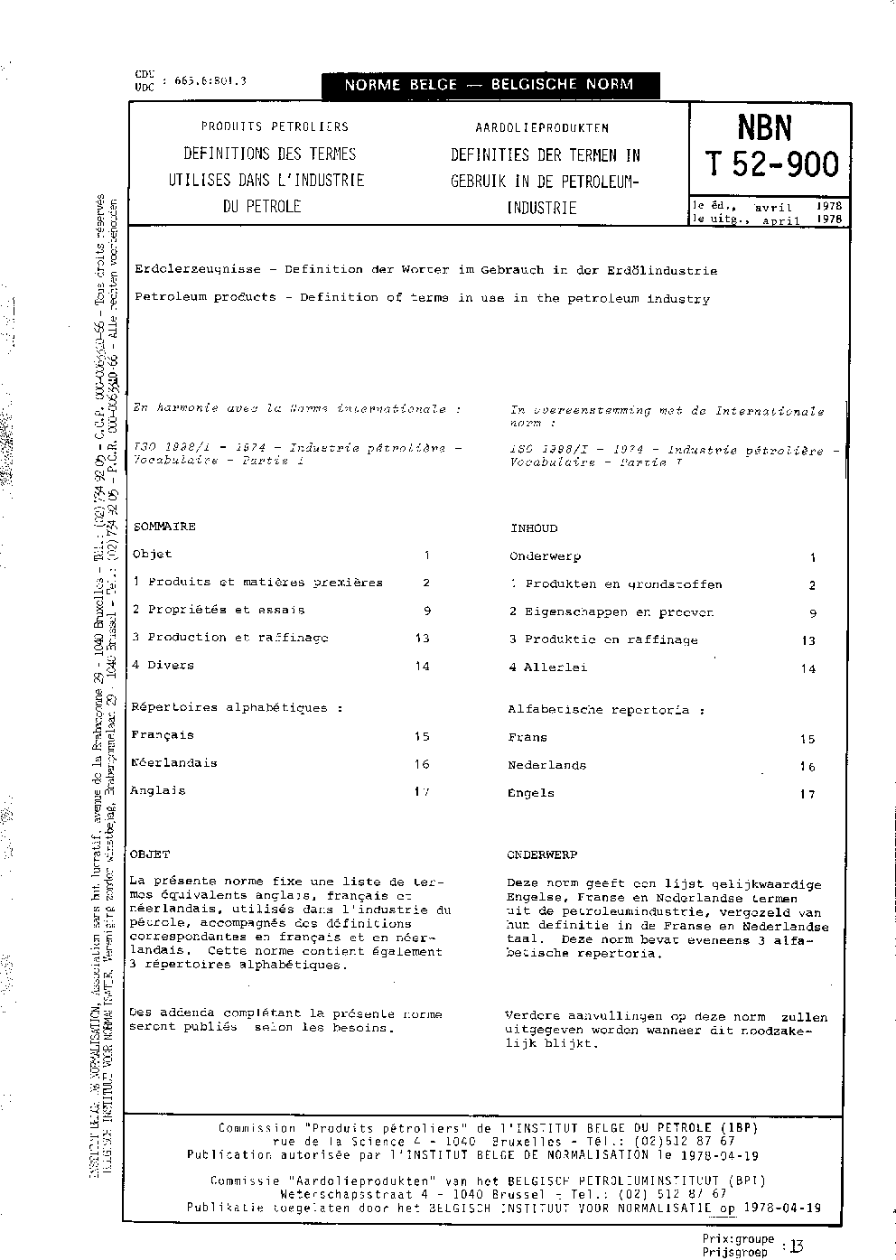 NBN T 52-900:1978