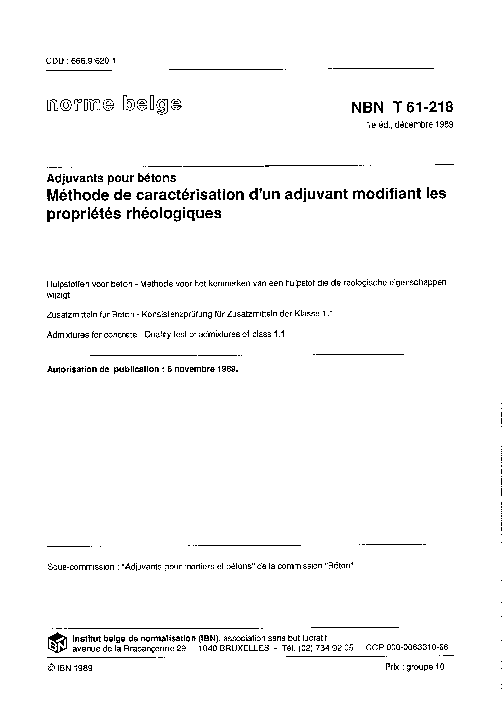 NBN T 61-218:1989