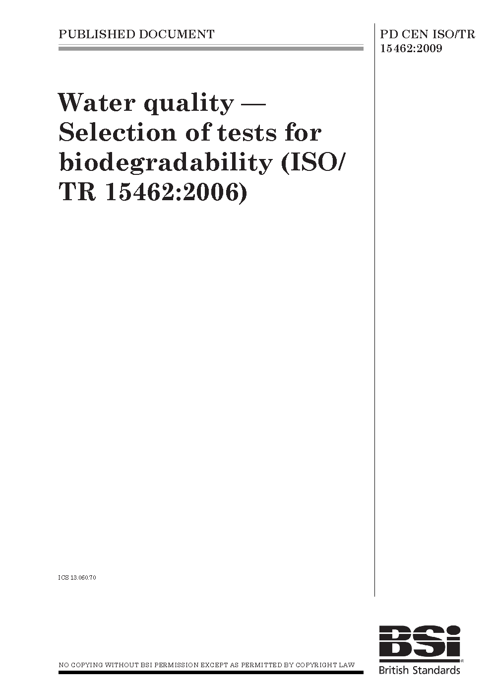 Quality;Biological analysis and testing;Bacteria;Biodegradability;Toxicity;Water;Chemical water pollutants;Selection;Testing conditions;Water testing;Sewage;Water pollution