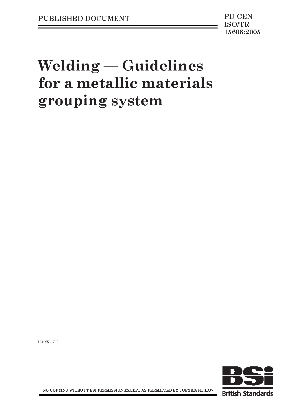 PD CEN ISO/TR 15608:2013