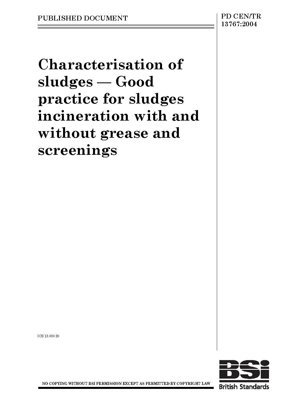 Characterisation of sludges. Good practice for sludges incineration with and without grease and screenings