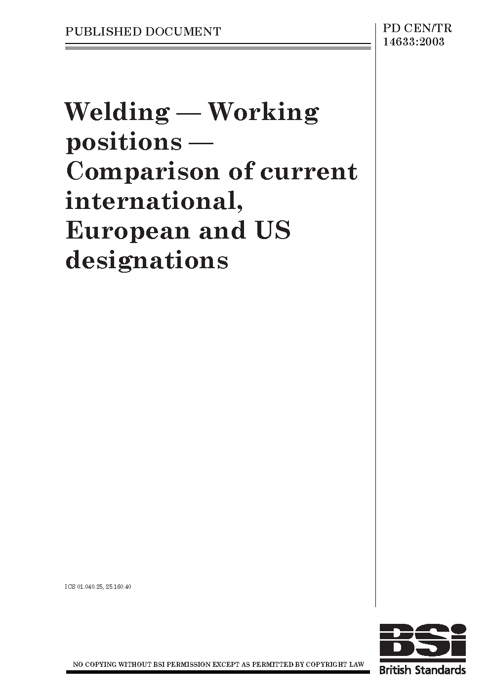 PD CEN/TR 14633:2003