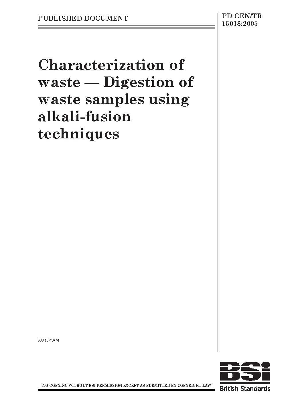 PD CEN/TR 15018:2004