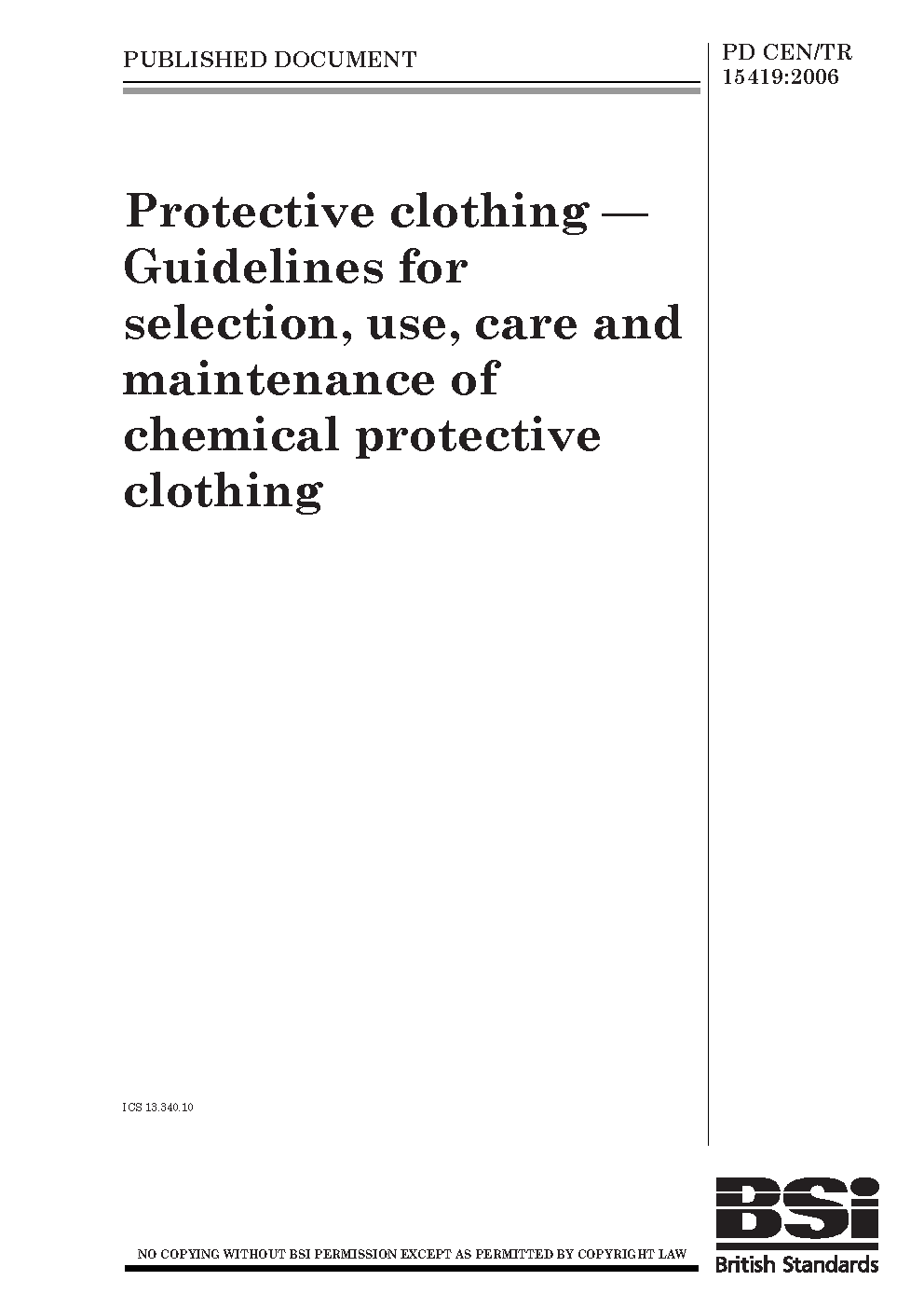 Protective clothing. Guidelines for selection, use, care and maintenance of chemical protective clothing