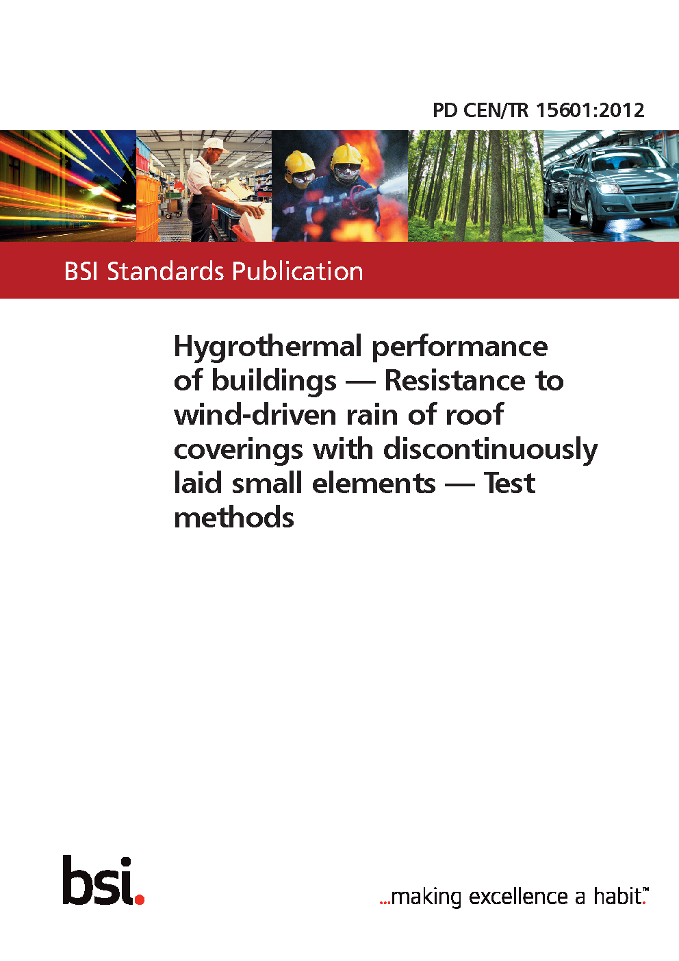 Hygrothermal performance of buildings. Resistance to wind-driven rain of roof coverings with discontinuously laid small elements. Test methods