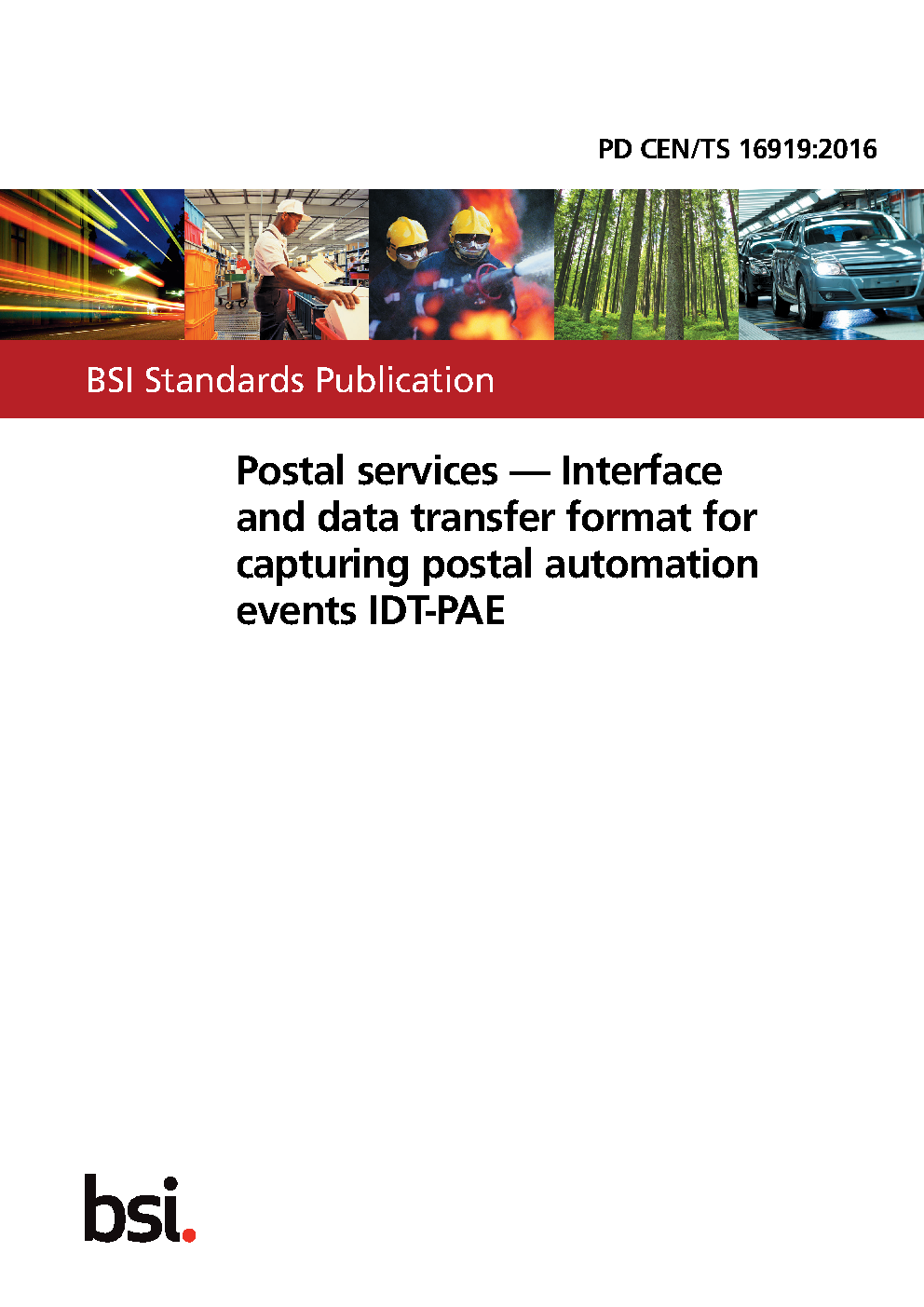 Postal services. Interface and data transfer format for capturing postal automation events IDT-PAE
