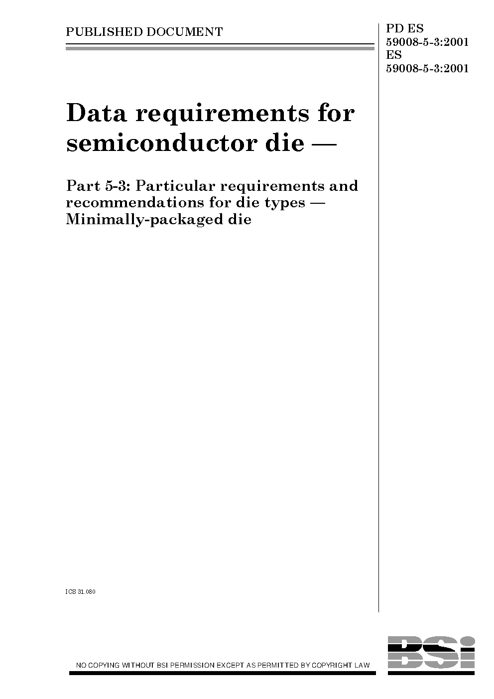 Data requirements for semiconductor die. Particular and recommendations die types Minimally-packaged