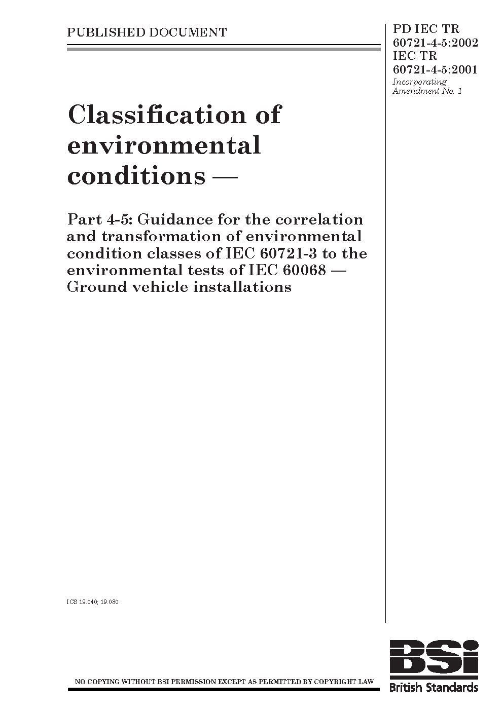 PD IEC TR 60721-4-5:2002