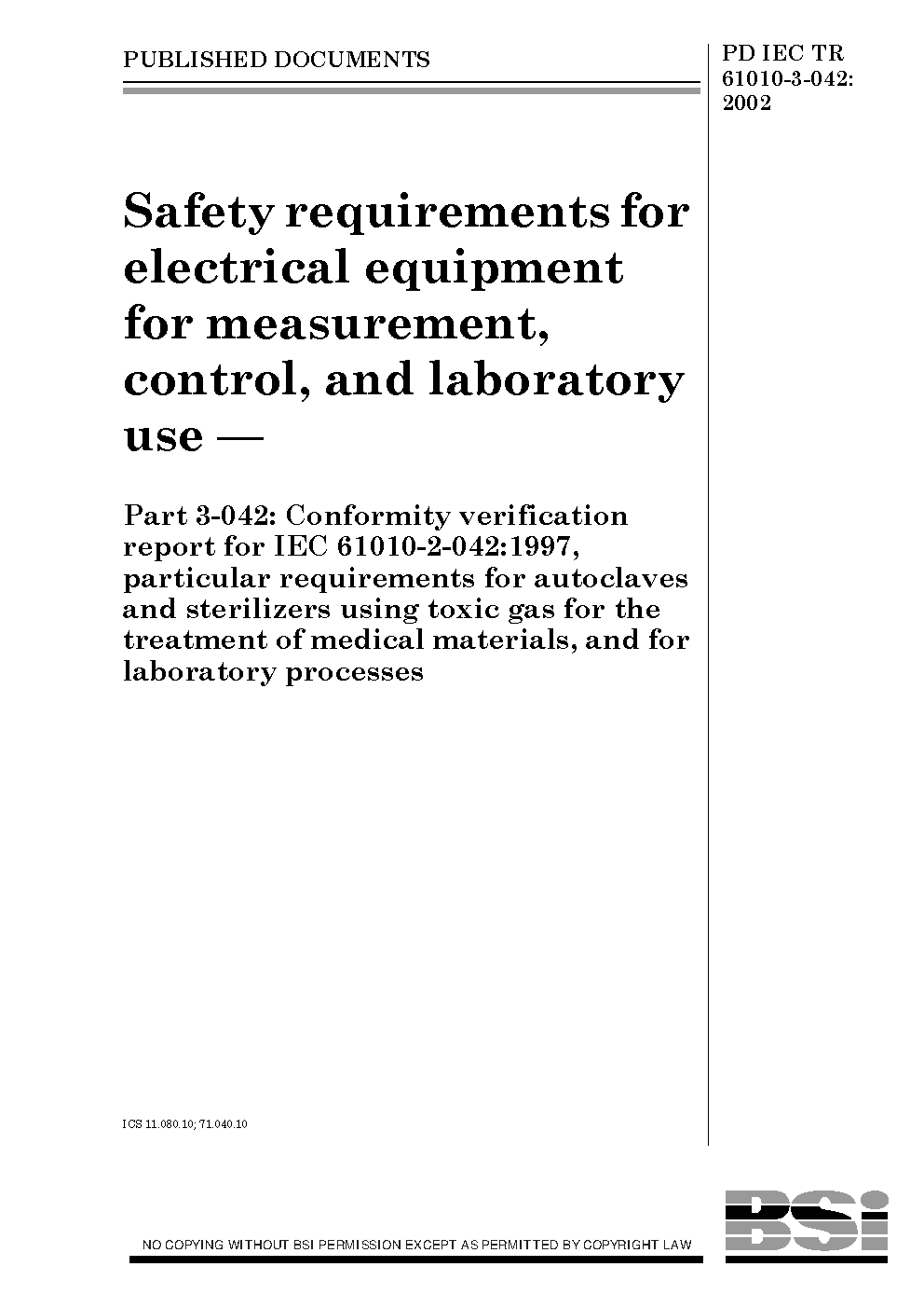 Safety requirements for electrical equipment measurement, control, and laboratory use Conformity verification report IEC 61010-2-042:1997, particular autoclaves sterilizers using toxic gas the treatment of medical materials, processes