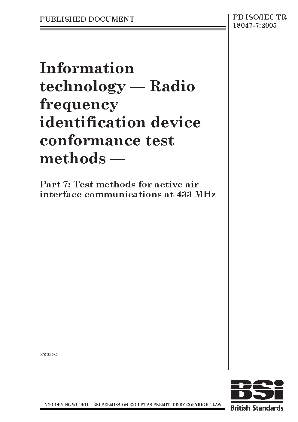 PD ISO/IEC TR 18047-7:2005
