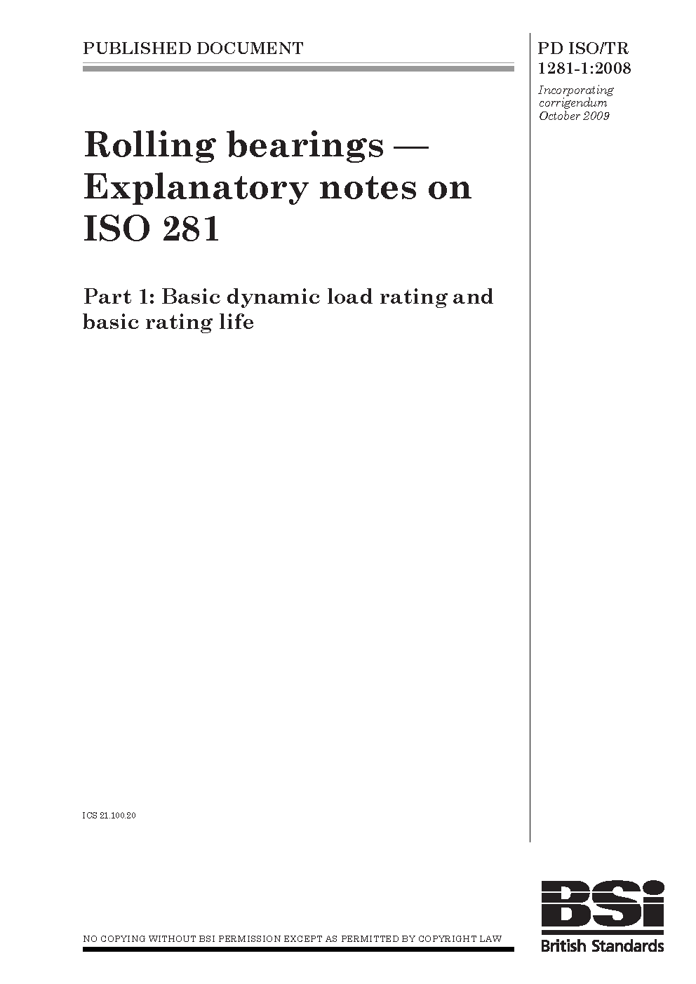 Rolling bearings. Explanatory notes on ISO 281 Basic dynamic load rating and basic life