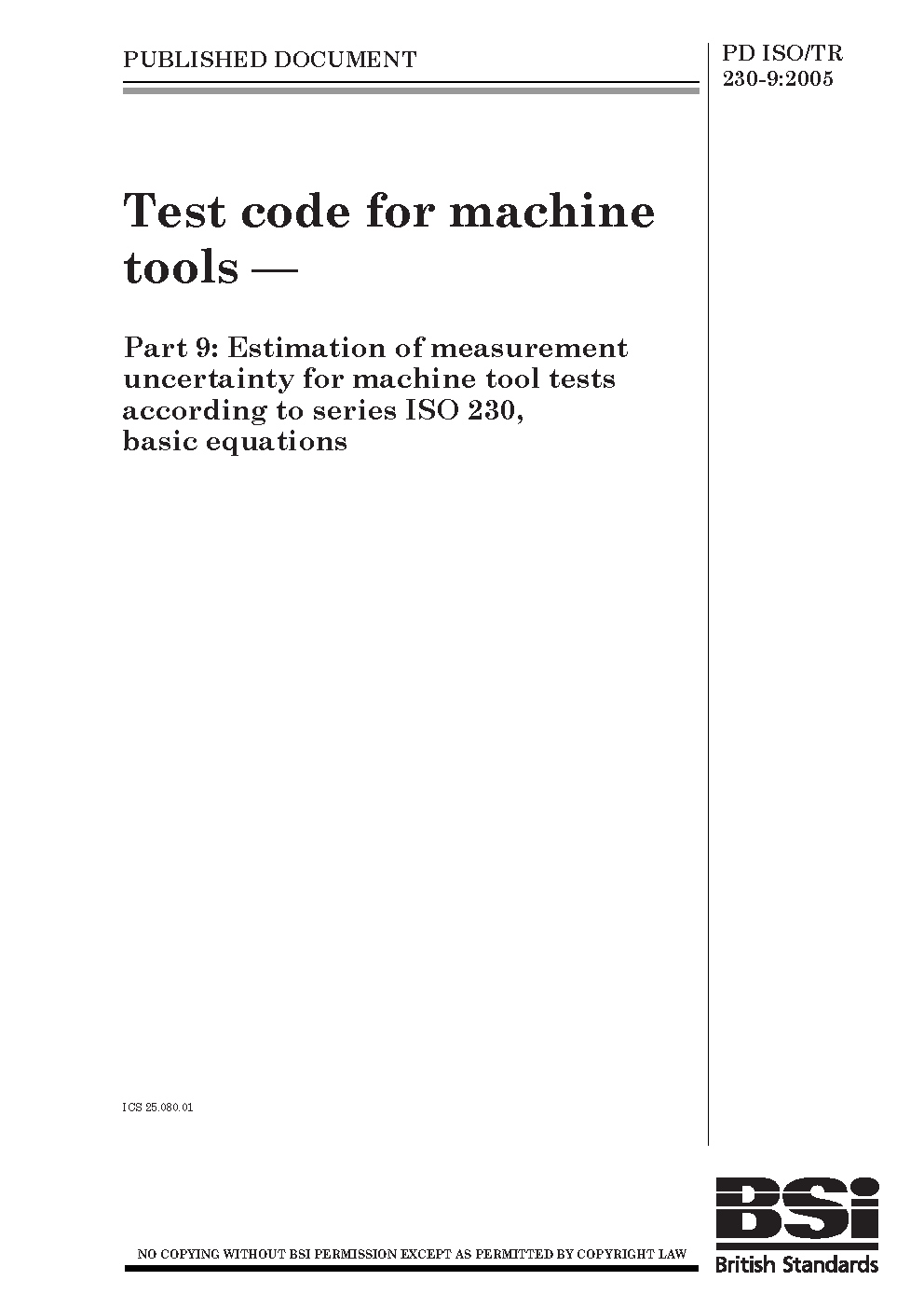 PD ISO/TR 230-9:2005