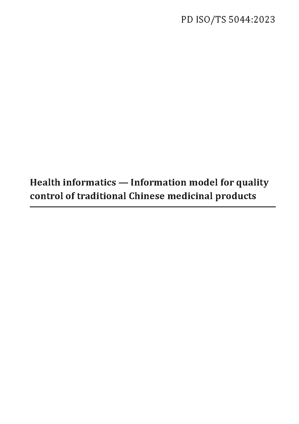 Health informatics. Information model for quality control of traditional Chinese medicinal products