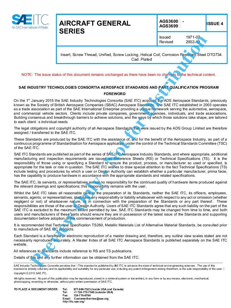 AGS3600-699 Insert, Screw Thread, Unified, Screw Locking, Helical Coil, Corrosion Resistant Steel DTD734. Cad. Plated