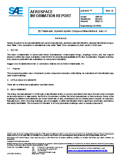 This index of trademarks of current and former manufacturers of aerospace fittings, couplings, hose, and tube support devices is within the scope of activities of the SAE G-3 Committee and available at the time of publication. Suggestions for additional entries may be sent to the SAE in Warrendale, PA.