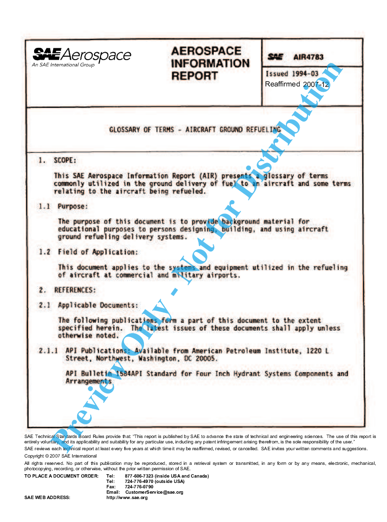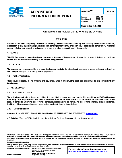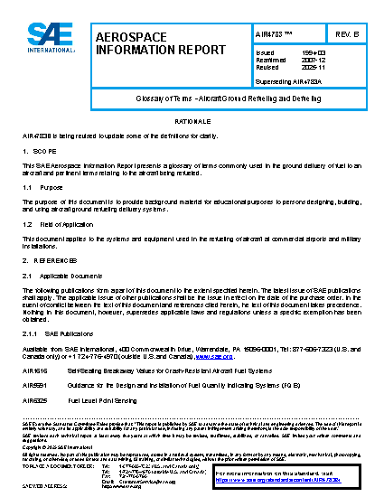 This SAE Aerospace Information Report (AIR) presents a glossary of terns commonly utilized in the ground delivery of fuel to an aircraft and some terms relating to the aircraft being refueled.