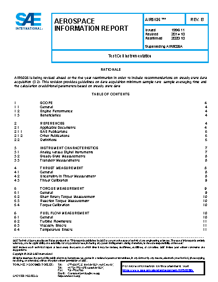 This document discusses, in broad general terms, typical present instrumentation practice for post-overhaul gas turbine engine testing. Production engine testing and engine development work are outside the scope of this document as they will typically use many more channels of instrumentation, and in most cases will have requirements for measurements that are never made in post-overhaul testing, such as fan airflow measurements, or strain measurements on compressor blades.