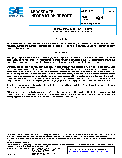 This document is applicable to commercial and military aircraft fuel quantity indication systems. It is intended to give guidance for system design and installation. It describes key areas to be considered in the design of a modern fuel system, and builds upon experiences gained in the industry in the last 10 years.