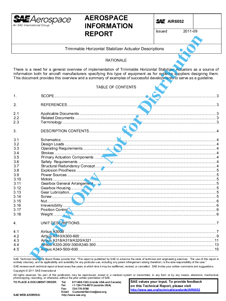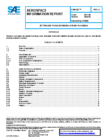 The purpose of this AIR is to provide a comprehensive description document that displays various examples of transport and business aircraft systems driving Trimmable Horizontal Stabilizers.