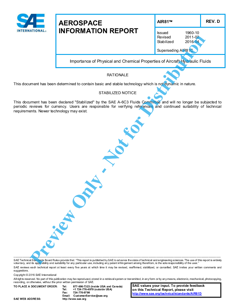 Importance of Physical and Chemical Properties of Aircraft Hydraulic Fluids (Stabilized: Apr 2016)