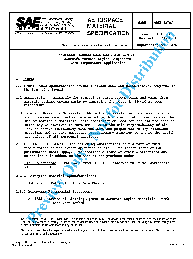 SAE AMS 1378A:1995-05-01