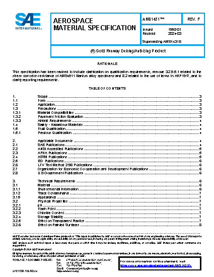 This specification covers a runway deicing and anti-icing product in the form of a solid. Unless otherwise stated, all specifications referenced herein are latest (current) revision.