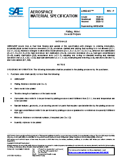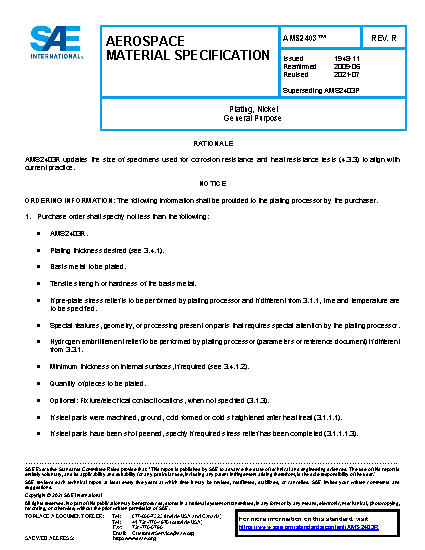 This specification covers the engineering requirements for electrodeposition of nickel and the properties of the deposit.