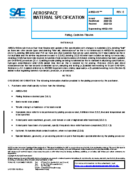 This specification covers the engineering requirements for electrodeposition of cadmium-titanium on metal parts and the properties of the deposit.