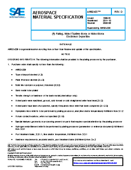 This specification covers the requirements for an electroless nickel-thallium-boron or nickel-boron deposit on various substrates.