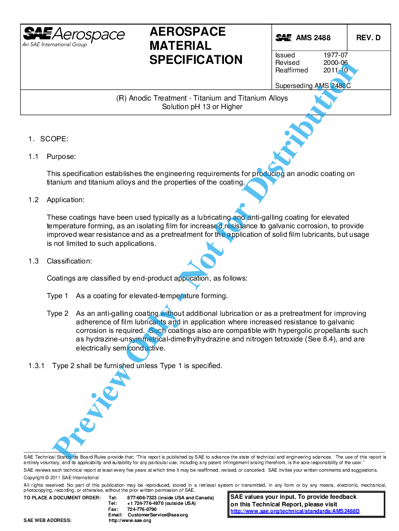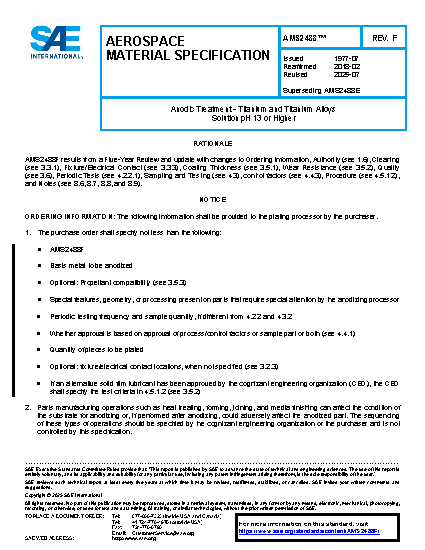 This specification establishes the engineering requirements for producing an anodic coating on titanium and titanium alloys and the properties of the coating.