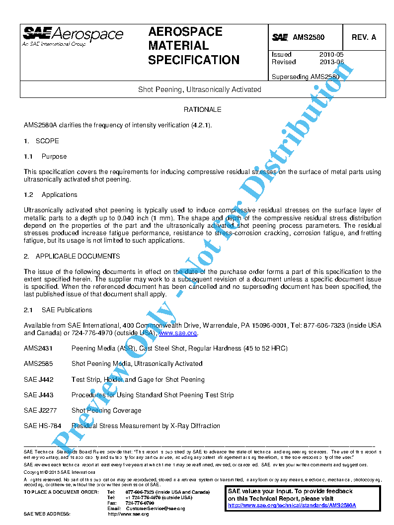 This specification covers the requirements for inducing compressive residual stresses on the surface of metal parts using ultrasonically activated shot peening.