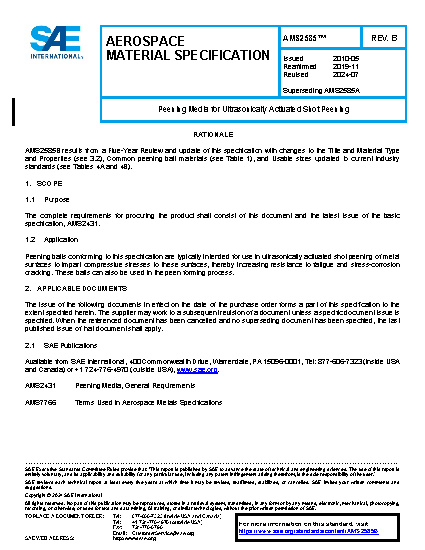 The complete requirements for procuring the product shall consist of this document and the latest Issue of the basic specification, AMS2431.