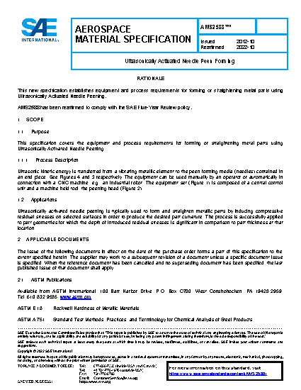 This specification covers the equipment and process requirements for forming or straightening metal parts using Ultrasonically Activated Needle Peening.