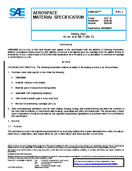 This specification covers the engineering requirements for producing brazed joints in parts fabricated from steels, iron alloys, nickel alloys, cobalt alloys, and copper alloys by use of silver alloys, and the properties of such joints.