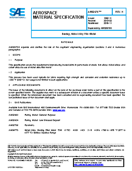 SAE AMS 2675H:2019-11-04