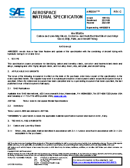 Identification Carbon and Low-Alloy Steels, Corrosion and Heat-Resistant Steels and Alloys Sheet, Strip, Plate, and Aircraft Tubing