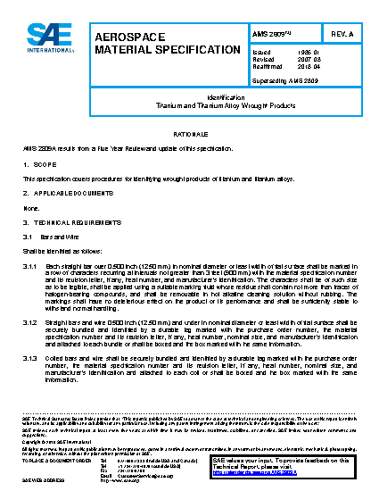 This specification covers procedures for identifying wrought products of titanium and titanium alloys.