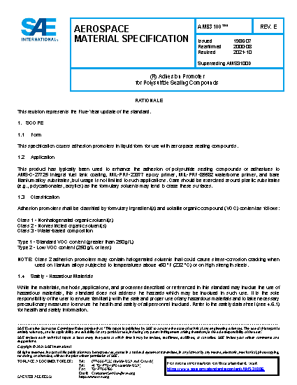 This specification covers adhesion promoters in liquid form for use with aerospace sealing compounds.