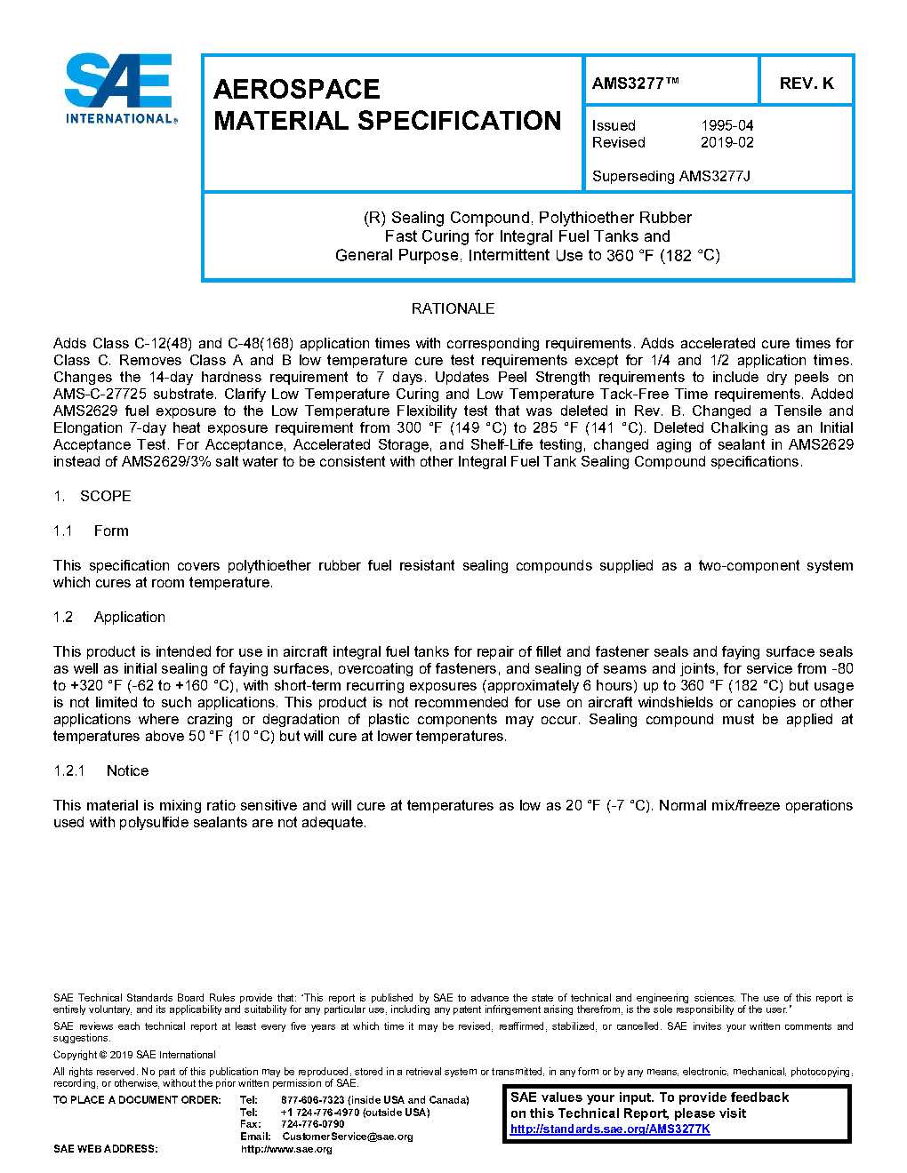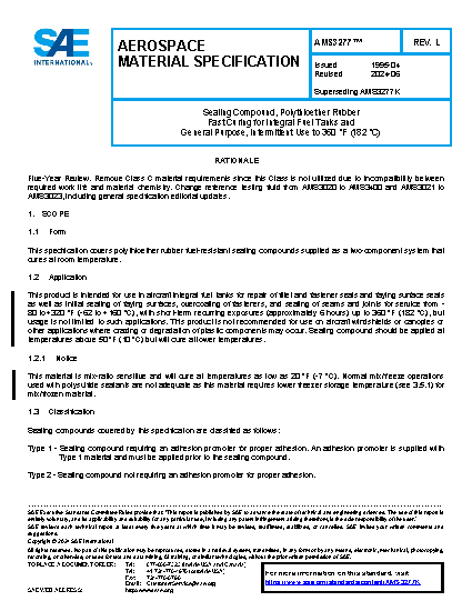 Sealing Compound, Polythioether Rubber Fast Curing for Integral Fuel Tanks and General Purpose, Intermittent Use to 360 °F (182 °C)