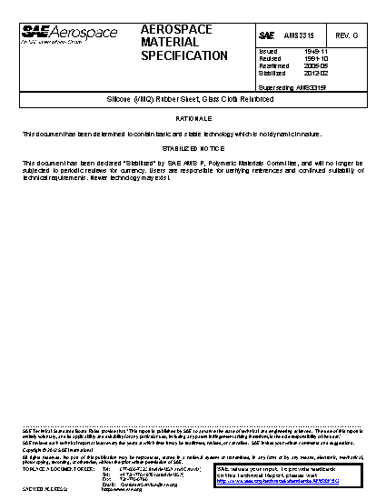Silicone (VMQ) Rubber Sheet, Glass Cloth Reinforced (Stabilized: Feb 2012)