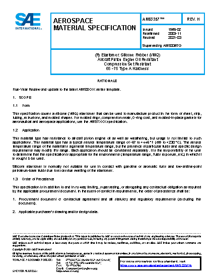 This specification covers a silicone (VMQ) rubber in the form of sheet, strip, tubing, extrusions, and molded shapes.