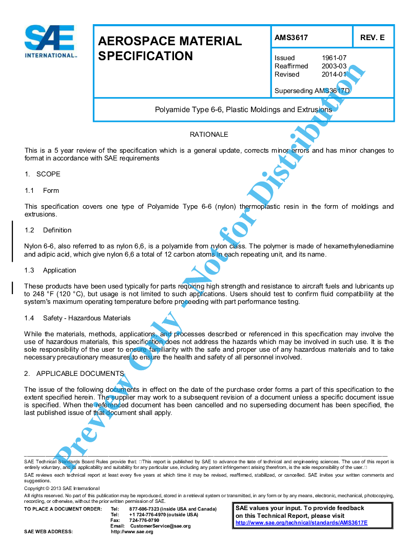 This specification covers one type of Polyamide Type 6-6 (nylon) thermoplastic resin in the form of moldings and extrusions.