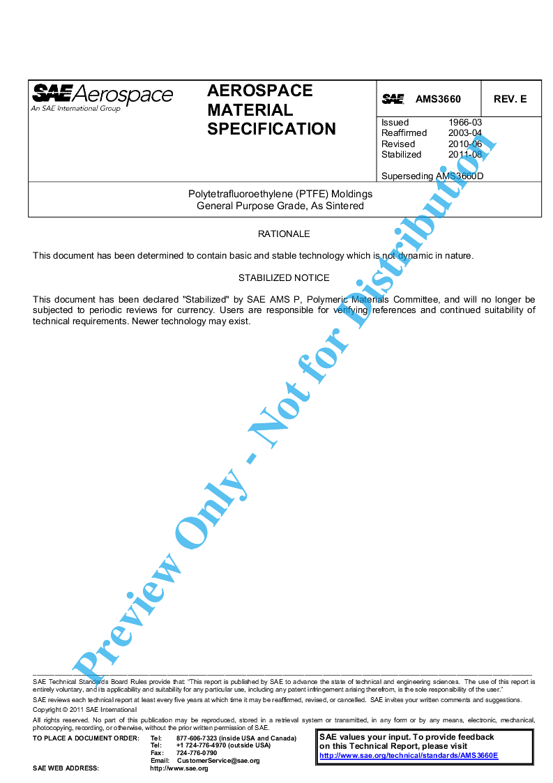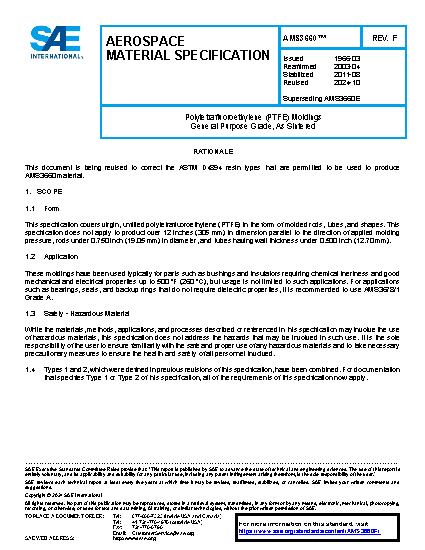 Polytetrafluoroethylene (PTFE) Moldings General Purpose Grade, As Sintered (Stabilized: Aug 2011)