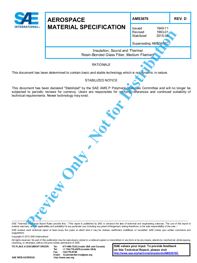 Insulation, Sound and Thermal Resin-Bonded Glass Fiber, Medium Filament (Stabilized: May 2015)