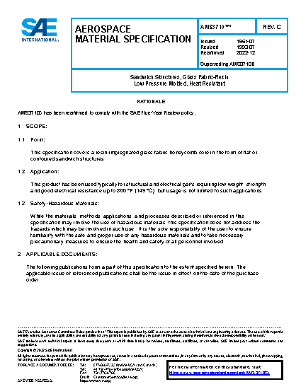 This specification covers a resin-impregnated glass fabric honeycomb core in the form of flat or contoured sandwich structures.
