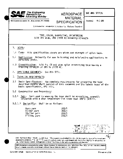 Tape, Nylon, Nonmelting, Reinforcing 5/16 (8) Wide, 350 (1555 N) Breaking Strength