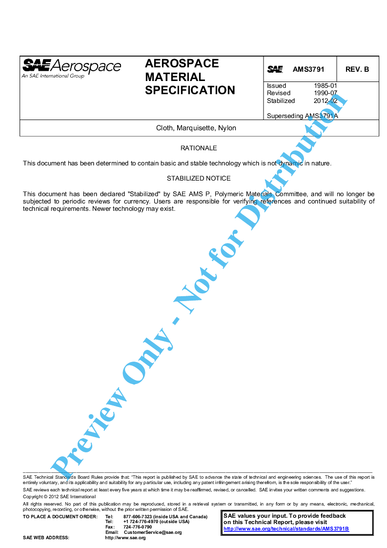 SAE AMS 3791B:2012-02-09