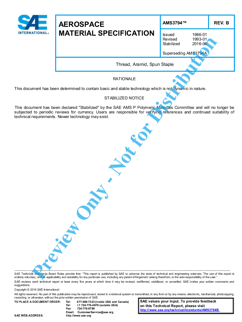 Thread, Aramid, Spun Staple (Stabilized: Jun 2016)