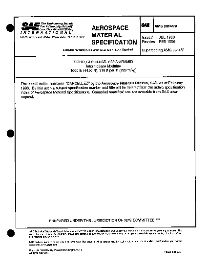 This specification has been "CANCELLED" by the Aerospace Materials Division, SAE, as of February 1996.