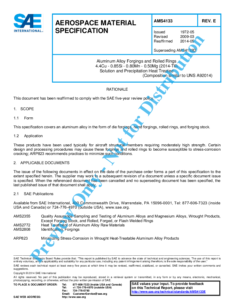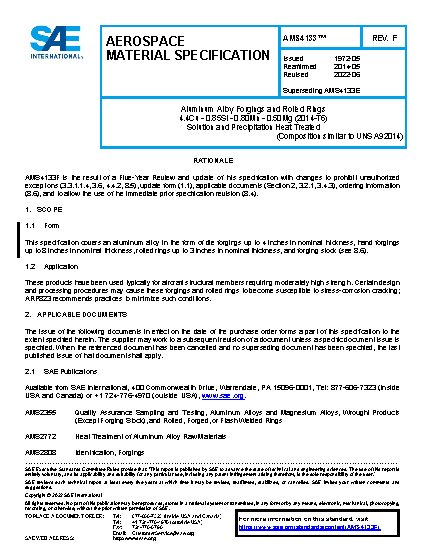 Aluminum Alloy Forgings and Rolled Rings 4.4Cu - 0.85Si - 0.80Mn - 0.50Mg (2014-T6) Solution and Precipitation Heat Treated